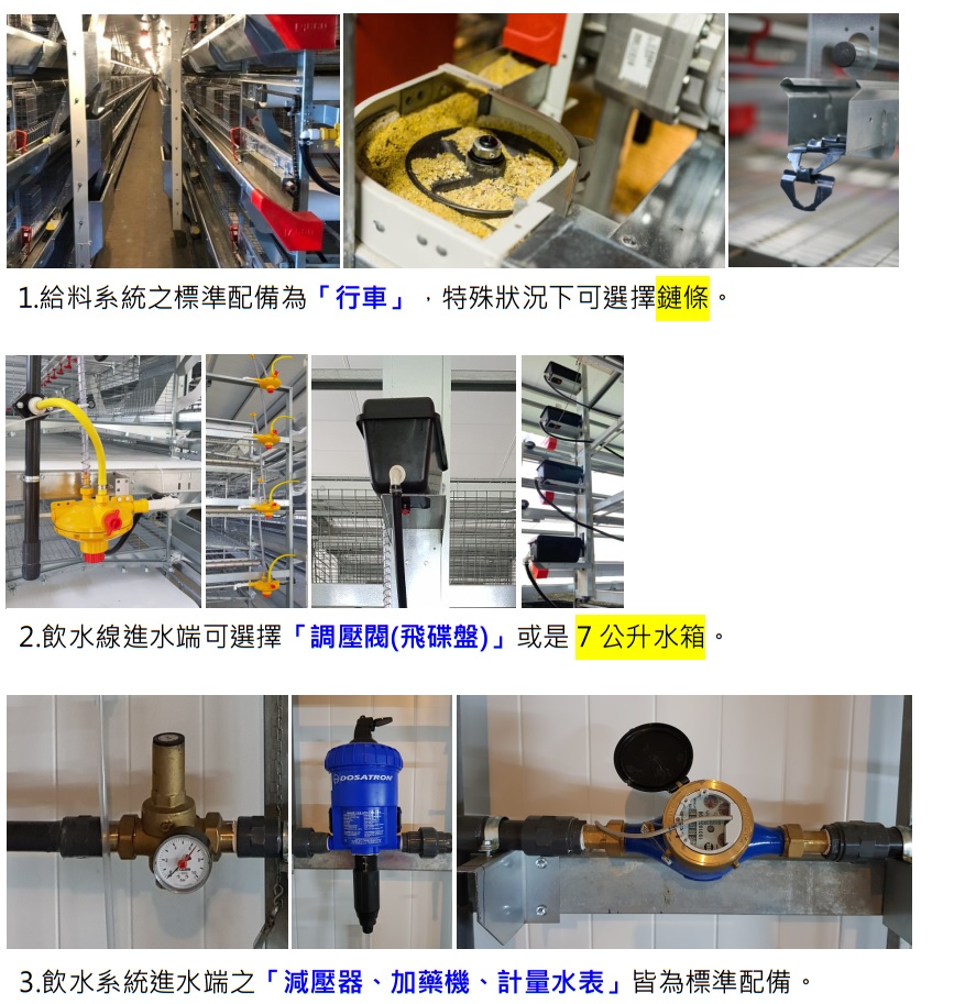 3.密閉環控雞舍最大的好處在於能有效「控制通風」,直立式層架雞舍最大的優點在於將「土地利用最大化」,透過FACCO的完善設計,就能有效降低環境劇烈變化對雞隻產能造成的衝擊,特別是在中雞成長階段,當體重不足時,就會影響未來的產蛋性能,而要維持穩定的體重,關鍵之一就是在於提供舒適穩定的環境,而P80中雞籠正是解決蛋中雞常見的體重不足、寄生蟲跟防疫漏針的最佳解決方案。